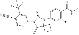 阿帕他胺為一種選擇性、競(jìng)爭(zhēng)性的新型非甾體雄激素受體(AR)抑制劑,在AR 過表達(dá)的前列腺癌細(xì)胞中通過結(jié)合AR 抑制雄激素介導(dǎo)的基因轉(zhuǎn)錄來控制腫瘤細(xì)胞的增殖轉(zhuǎn)錄,用于治療轉(zhuǎn)移性內(nèi)分泌治療敏感性前列腺癌成年患者及有高危轉(zhuǎn)移風(fēng)險(xiǎn)的非轉(zhuǎn)移性去勢(shì)抵抗性前列腺癌成年患者。