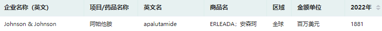 據(jù)藥融云數(shù)據(jù)顯示,阿帕他胺片2022年全球銷售額超過18.8億美元。